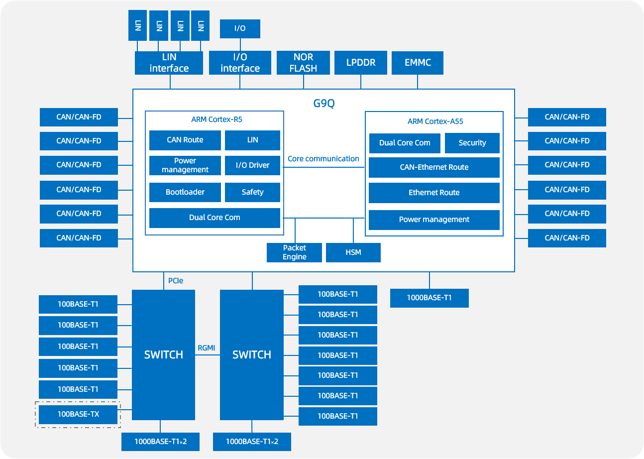 1 × Arm® Cortex® -R5 @800MHz + 4×Arm® Cortex® -A55 @1.4GHz